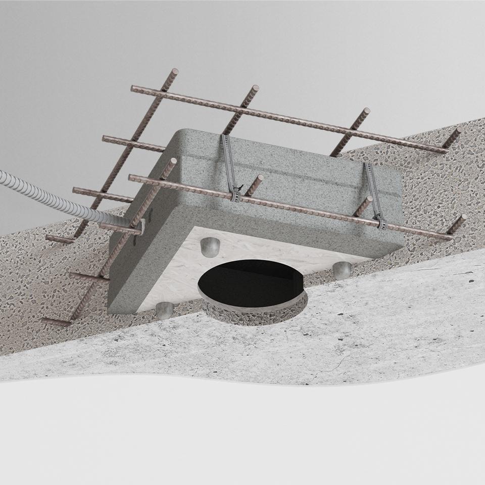 Robust og lydoptimeret indstøbt hus til montering af loftshøjttalere i in-situ beton. Euroboxx er specielt udviklet til det europæiske marked og er kun velegnet til betonlofter.